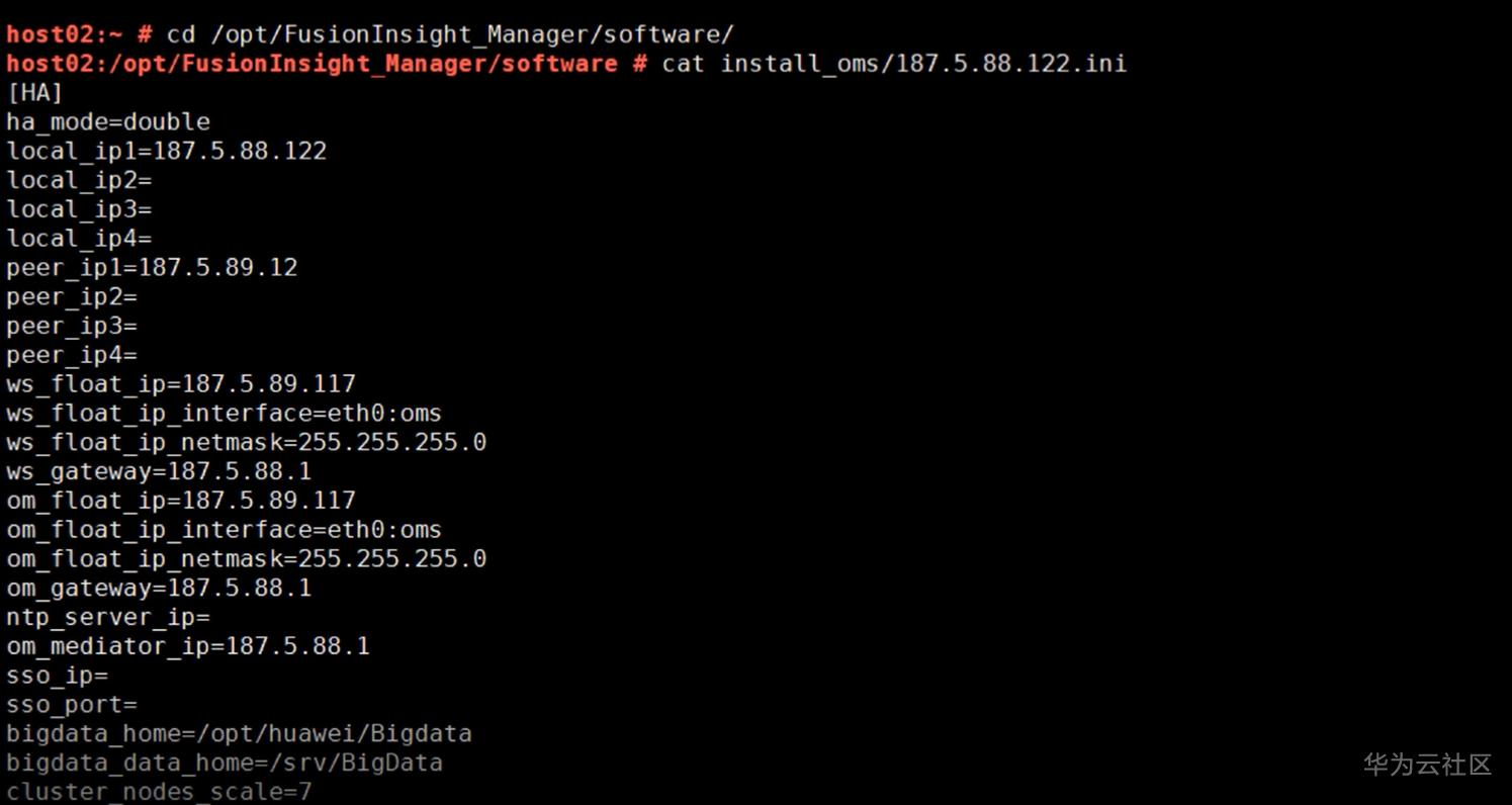 cd /opt/FusionInsight_Manager/software cat install_oms/192.168.10.11.ini