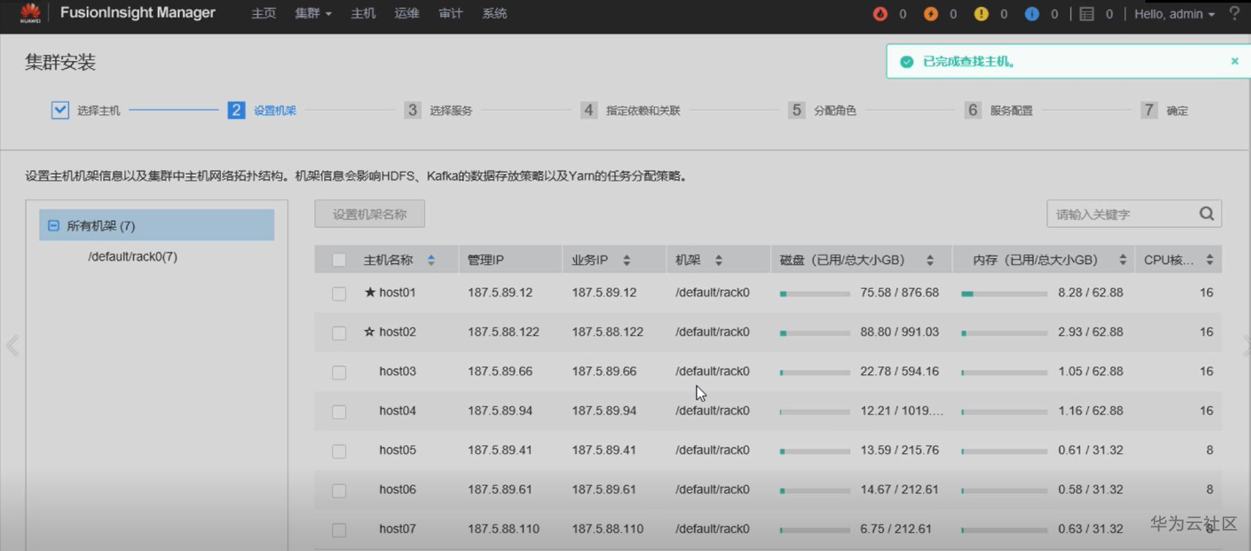 》一次性规划并安装Manager、BASE、HD、Porter、Spark2x部件包及服务。