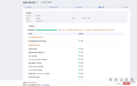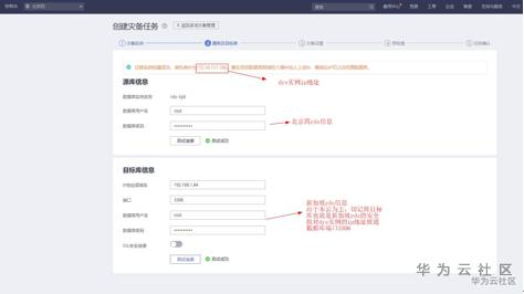 *如果本云为主,要注意将目标库的安全组对drs实例的ip地址放通数据库端口,否则测试连接将会失败。