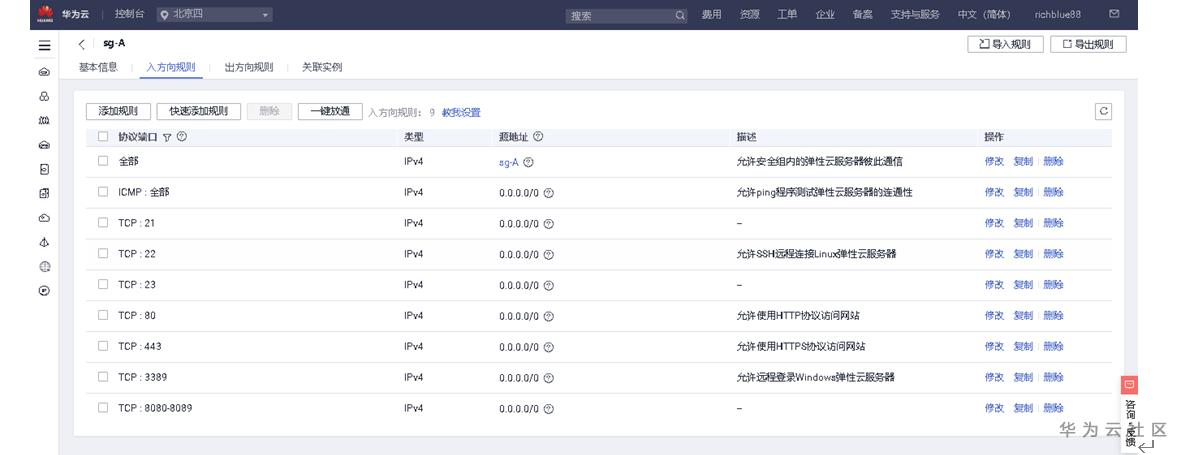 安全组开放的端口:21-23,80,443,3389,8080-8089