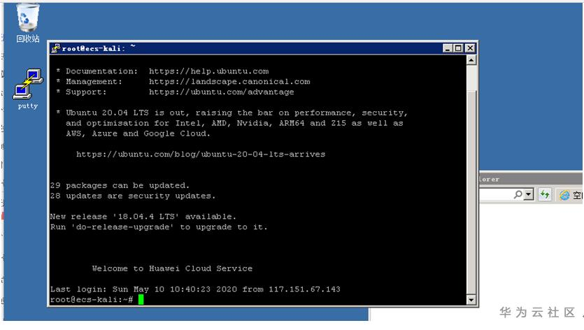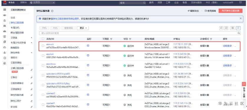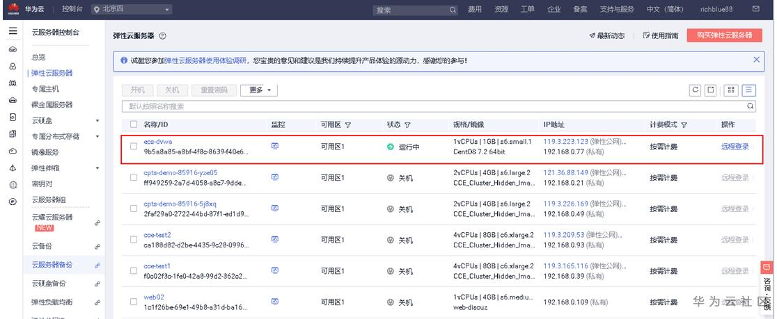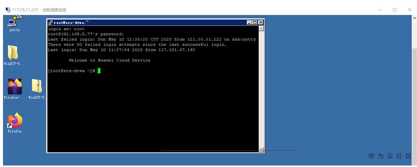 使用windows云主机登录ecs-dvwa云主机,验证可通过云主机管理