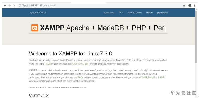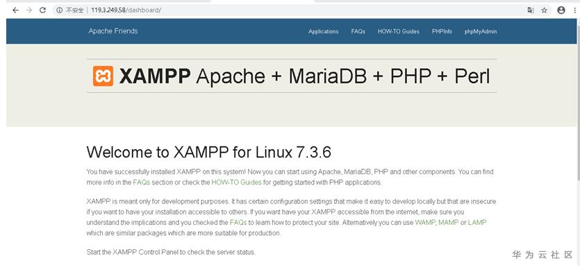 本地浏览器访问xampp页面,输入http://119.3.223.123/