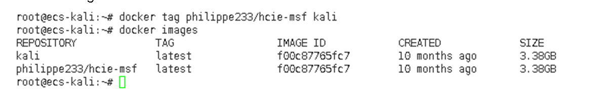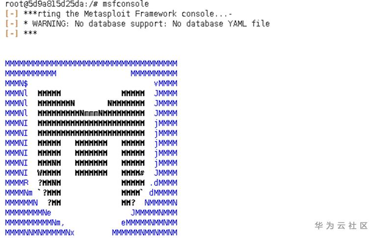 启动kali并进入其docker实例,并通过msfconsole命令验证kali已经正常运行