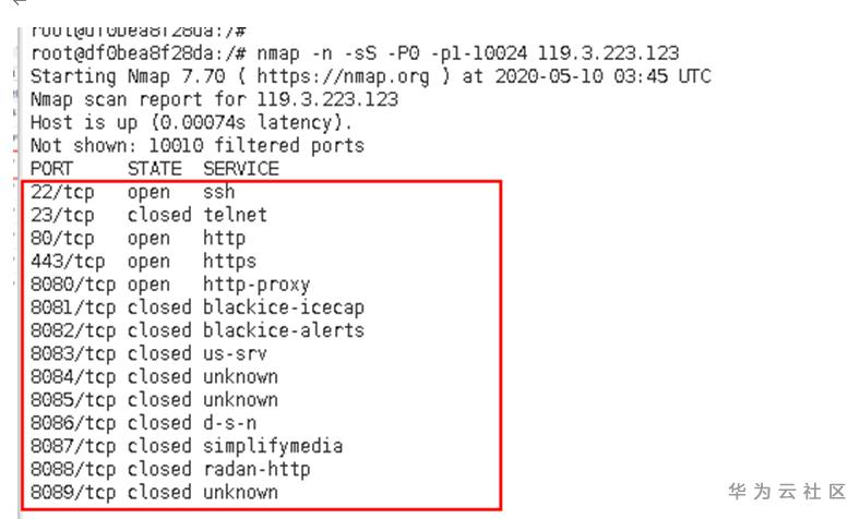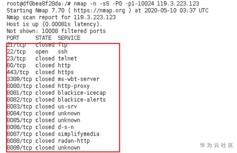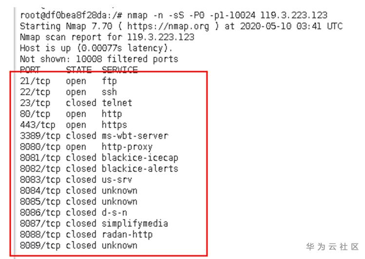 nmap -n -sS -P0 -p1-10024 119.3.223.123