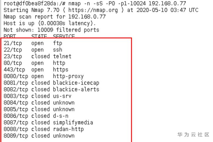 通过扫描结果可以看到,当主机启动了相关的服务,并开发对外访问的端口,可以立刻通过类似nmap这类扫描工具获取。所以对不使用的网络端口需要做适当的安全策略.