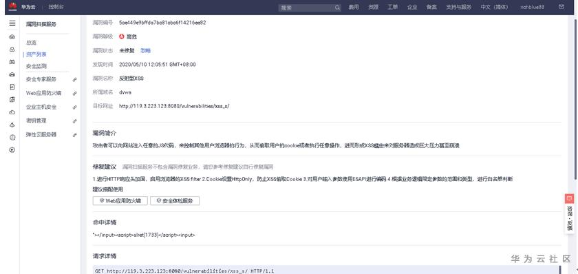 表示该页面存在跨站点脚本攻击,攻击者可以通过诱导客户执行脚本,窃取用户的登录会话对用户账号进行操作
