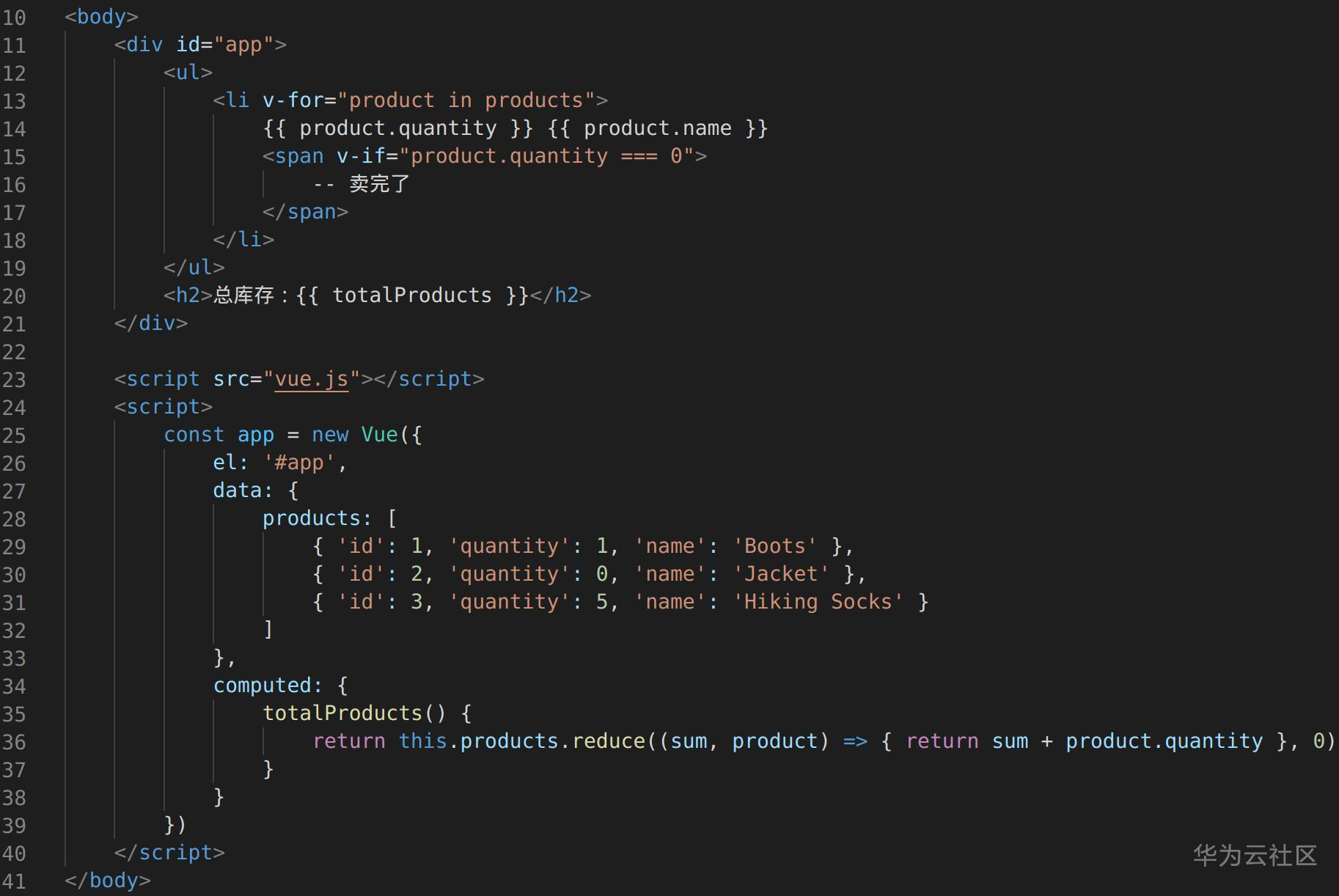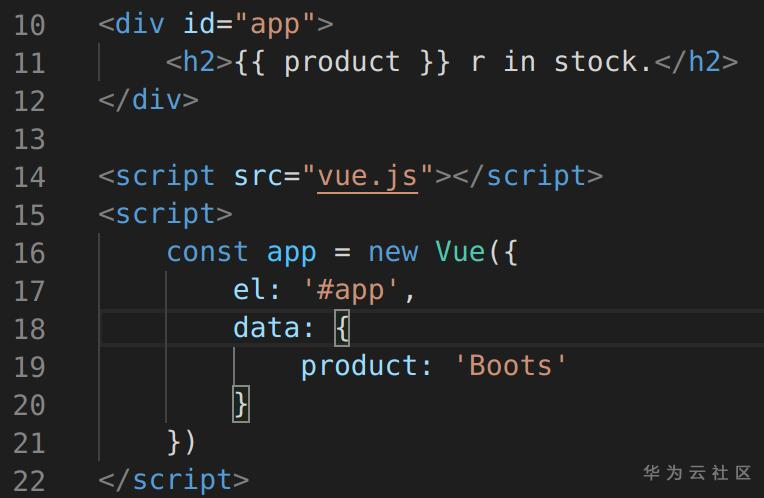app中的el属性(代表element),关联到vue要作用的文档元素上,可以看到,这里使用的是id定位方式。
