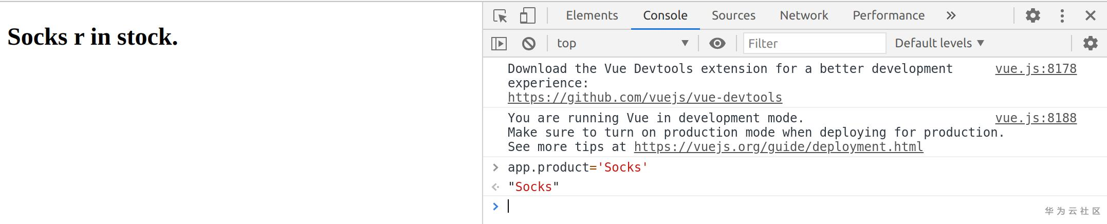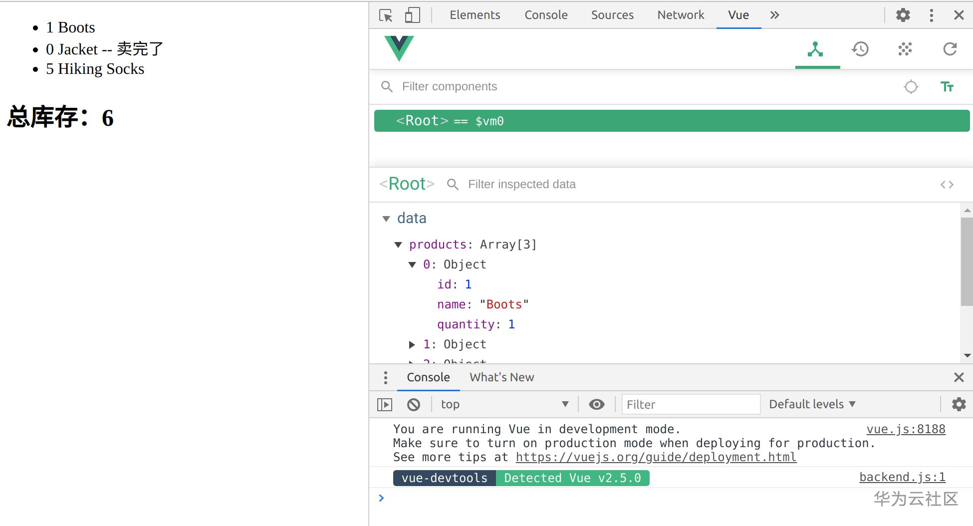 用devtool可以随时检查vue对象(这里是App变量)的内部细节,devtool在华为classroom的WEB全栈课程资料里面可以下载