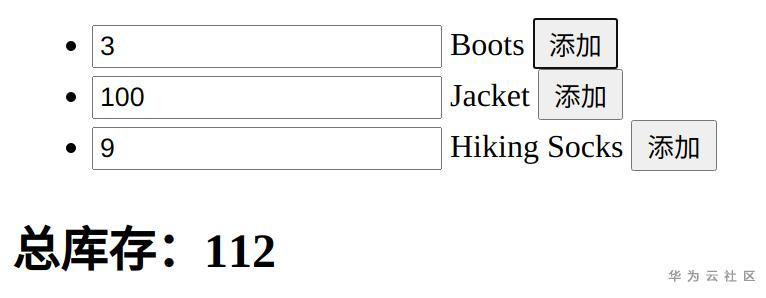 在输入框输入会让总库存产生变化,“添加”按钮的点击同时更新了输入框的值