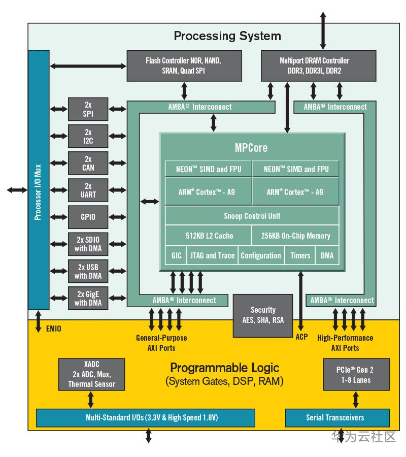 Xilinx的ZYNQ(ARM Cortex-A9 + Artix-7/Kintex-7可编程逻辑架构)SoC处理器等。