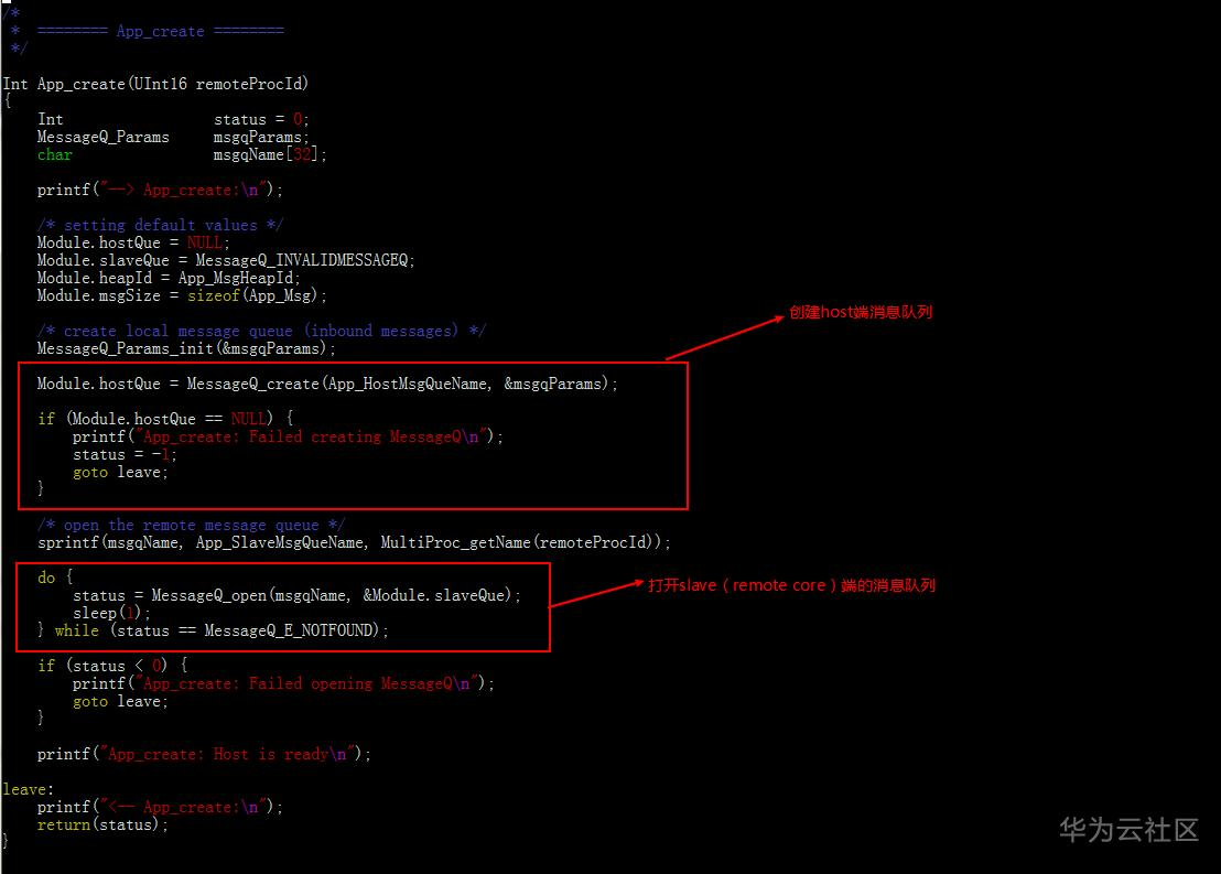 MessageQ_Handle MessageQ_create (String name, MessageQ_Params *params):创建消息队列,创建队列名称将成为后面MessageQ_open的依据。