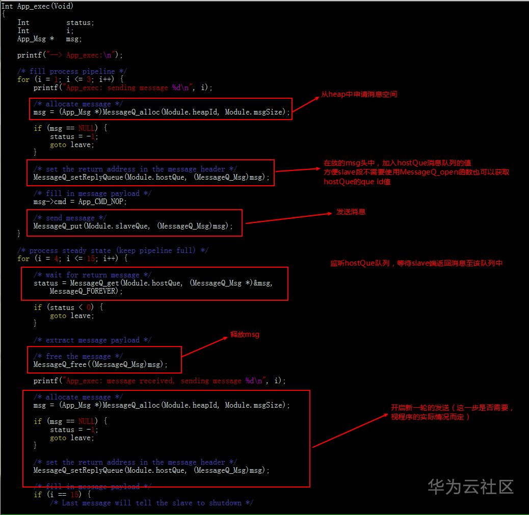 MessageQ_Msg MessageQ_alloc(UInt16 heapId, UInt32 size):申请消息空间,从heap中申请,所以需要先打开heap获取heapID,消息由MessageQ_Msg结构体长度规定。