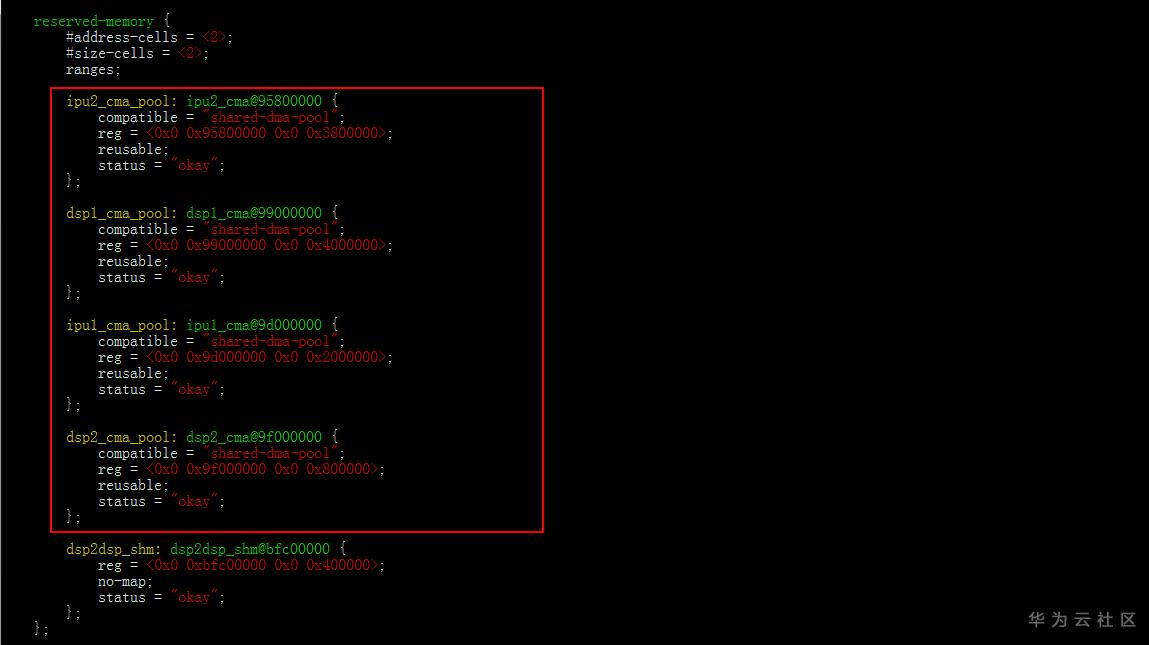 dts文件中,预留了几段空间作为从核的段空间(DDR空间):