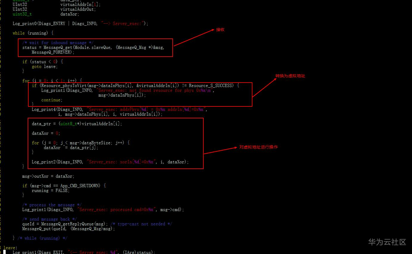 DSP端的处理:接收物理地址,转换为虚拟地址进行操作,发送操作完成的结果。这里DSP需要将地址返回给ARM的话,那应该将虚拟地址转换为物理地址,再传给ARM端。