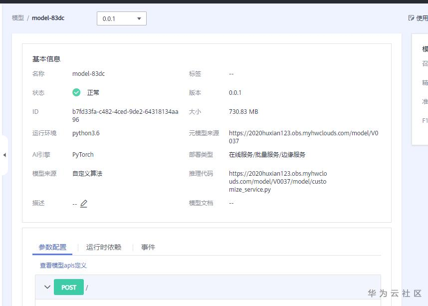 5、通过modelarts推理代码部署。推理代码如下: