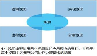 视图中的+1是指场景,负责把把视图中的元素如何协作串联在一起。每个场景负责描述在一个视图中的多个架构元素如何协作以完成一个请求。例如,在逻辑视图中的场景展现了类是如何协作,在进程视图中的场景展现了进程的协作。