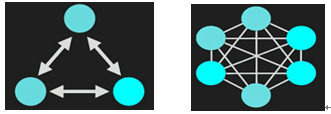 需求不断扩展变化,增加了第三个组件,那么这三个组件之间任意交互,复杂度就会提高: