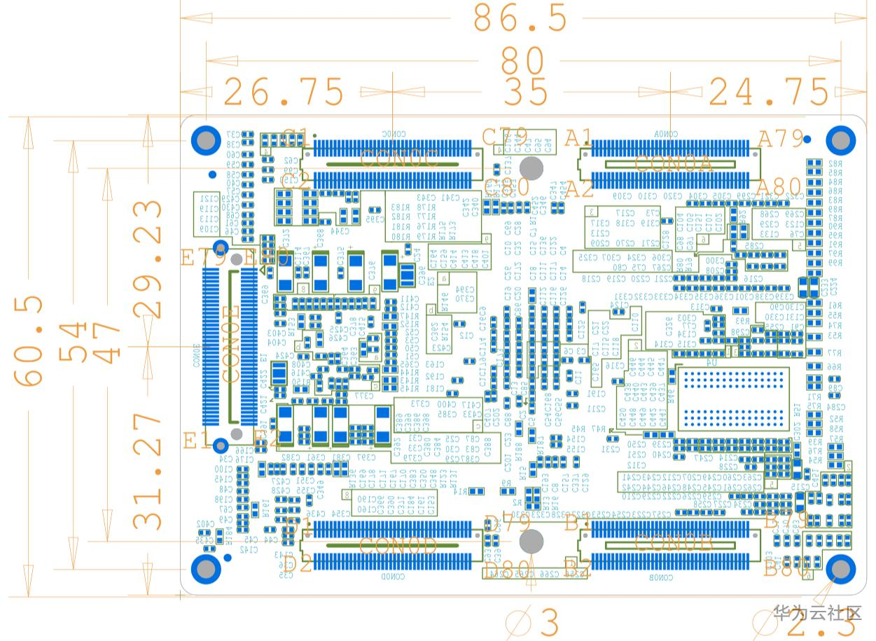 图 6 核心板机械尺寸图(顶层透视图)