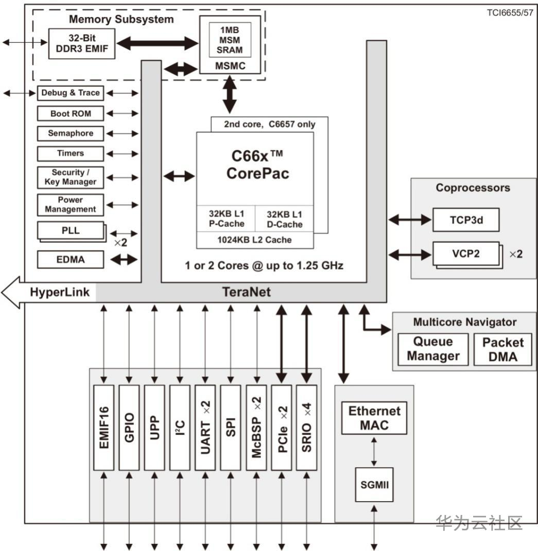 TI TMS320C665x是一款高性能定点/浮点DSP处理器,主频高达1.0/1.25GHz,处理能力强,单核TMS320C6655和双核TMS320C6657管脚pin to pin兼容,拥有多种工业接口资源,以下是TMS320C665x CPU功能框图: