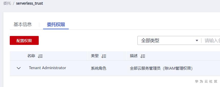 注意,新版的IAM工作台和教程里面有一定区别,搜索Tenant Administrator并选中确认即可。