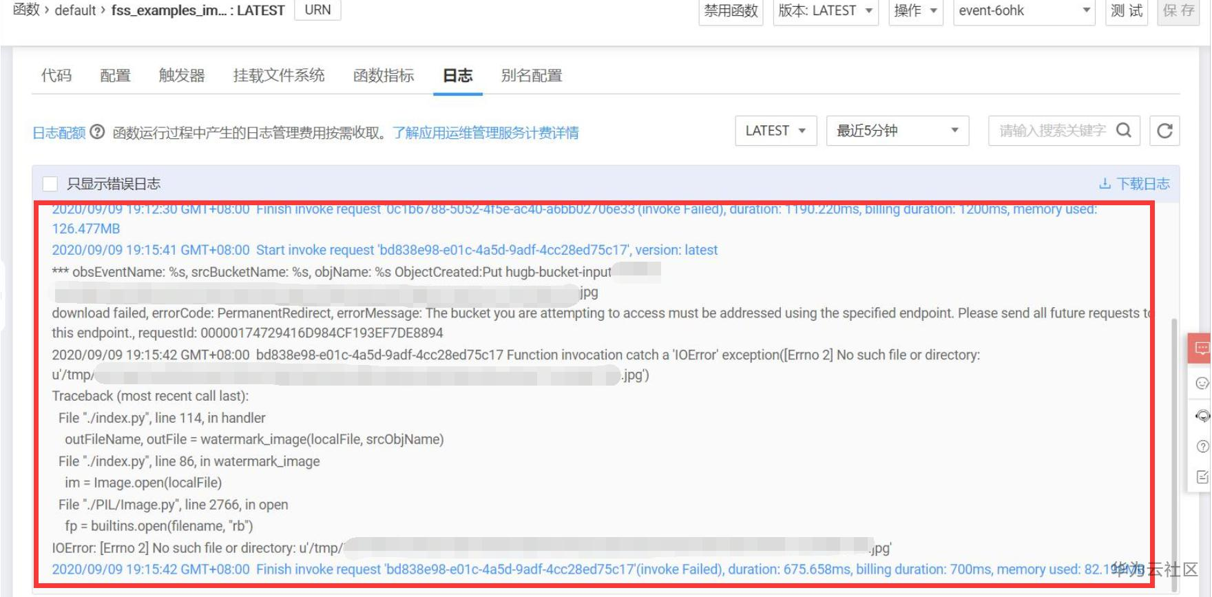 创建函数,创建OBS,利用函数工作流给图片加水印。