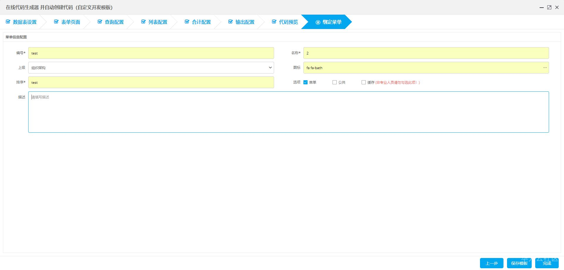 进入代码生成器,便进入开发模板,最初共设计了多个模板,后来参考客户意见,优化成统一的自定义开发模板。
