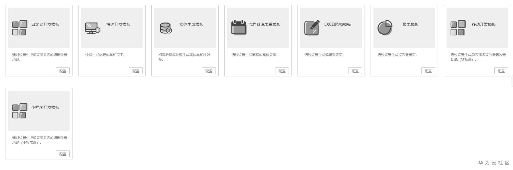 进入代码生成器,便进入开发模板,最初共设计了多个模板,后来参考客户意见,优化成统一的自定义开发模板。