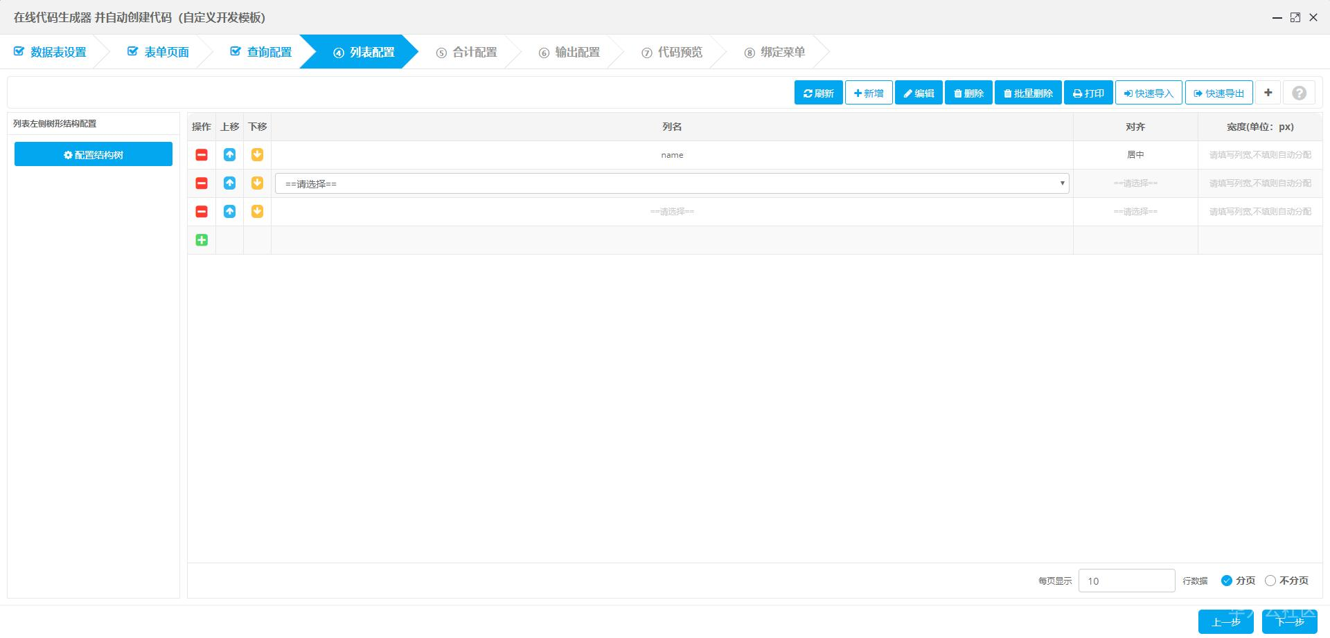 点击模板后进入设计页面,根据向导进行配置,完成后点击下一步即可