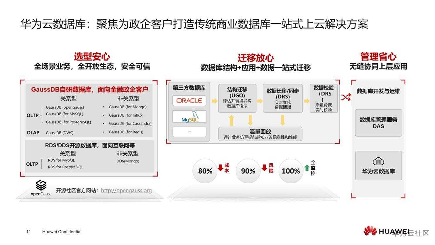 目前,华为已拥有成熟商用的为客户提供上云的数据复制服务DRS、数据管理服务DAS、分布式数据库中间件DDM等数据库工具服务。同时,华为云下半年也还会陆续发布数据库应用迁移工具。