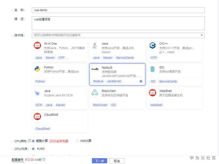华为云CloudIDE创建实例