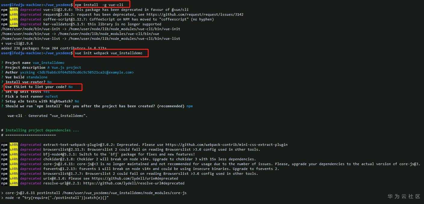 vue init webpack VueDemo 下载脚手架模板 + 项目名称 Project name vue_installdemo 项目名称只能小写