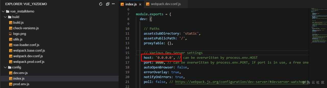 1. 修改config里index.js, host为0.0.0.0