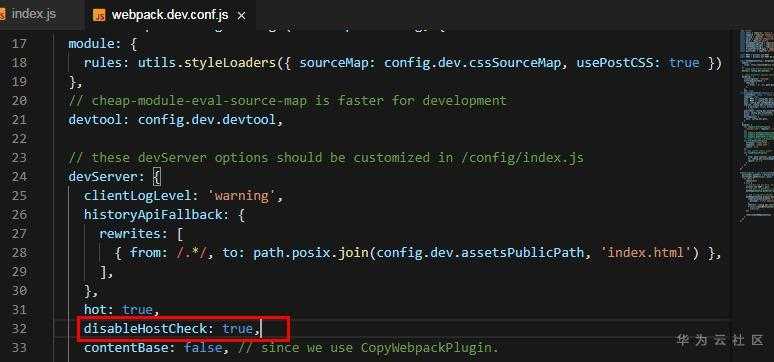 2. 修改build里webpack.dev.conf.js,找到 devSever添加