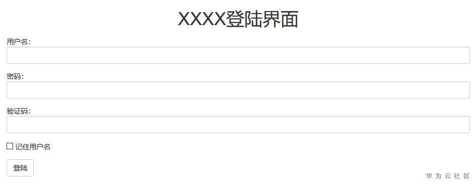 <div id="container" style="width:96%;margin-left:2%;"> <form id="form"> <div class="form-group text-center"> <h1>XXXX登陆界面</h1> </div> <div class="form-group"> <lable for="user">用户名:</lable> <input type="text" class="form-control" id="user"> </div> <div class="form-group"> <lable for="password">密码:</lable> <input type="password" class="form-control" id="password"> </div> <div class="form-group"> <lable for="code">验证码:</lable> <input type="text" class="form-control" id="code"> </div> <div class="form-group"> <lable> <input type="checkbox" id="saveUser"> 记住用户名 </lable> </div> <button type="submit" class="btn btn-default">登陆</button> </form></div>