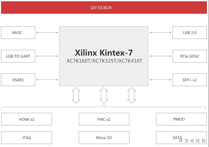 逻辑单元326K个,DSP Slice 840个,8对高速串行收发器,每通道通信速率高达12.5Gbit/s;