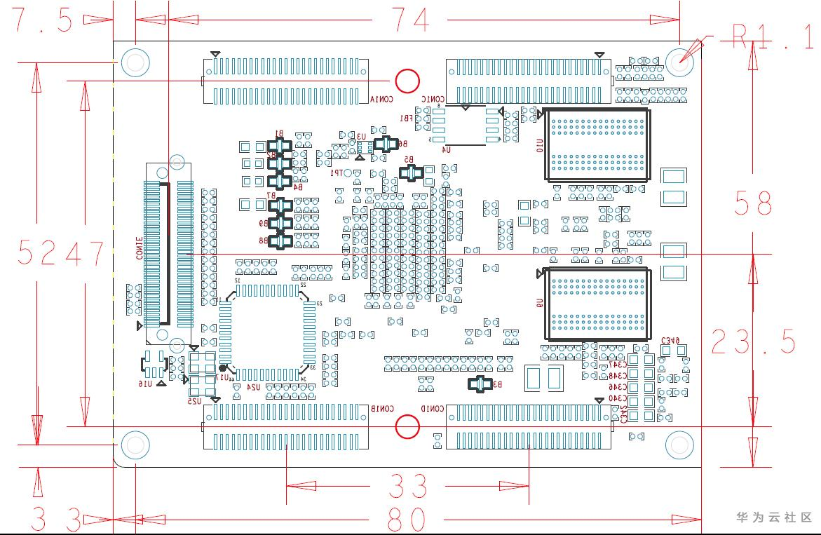 图 6 核心板机械尺寸图(顶层透视图)