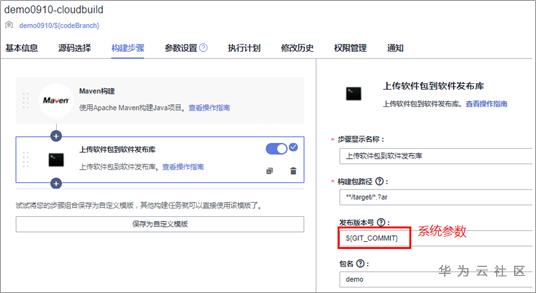然后使用系统参数GIT_COMMIT将CommitID作为发布仓库路径。