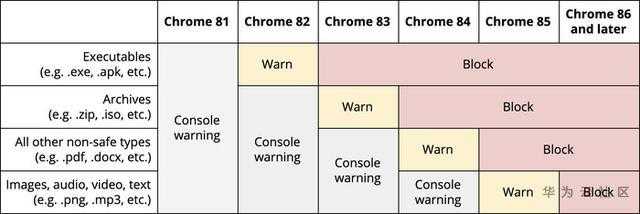 ☞ Chrome 84(2020年 8 月):警告除图片、音视频、文本之外的混合内容的下载;