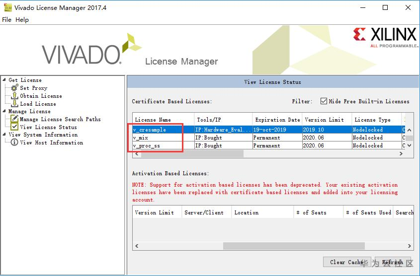 成功导入后,点击View License Status可以查看新添加的IP核license如下图。