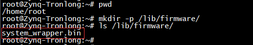 评估板上电启动进入文件系统,执行如下指令新建一个"/lib/firmware"文件夹。将由Vivado工程编译生成的xxx.bin文件传送到评估板文件系统的"/lib/firmware/"目录下,并重命名为system_wrapper.bin。
