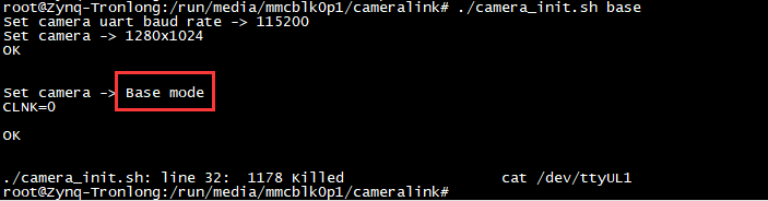 Target# ./camera_init.sh base //初始化CameraLink相机