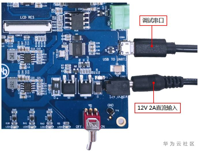 接入电源,并使用Micro USB线连接PC机和评估板的USB TO UART3调试串口。