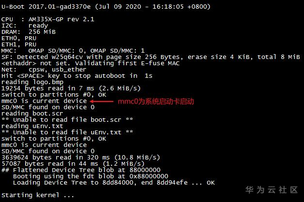 将Linux系统启动卡插入评估板Micro SD卡槽,根据评估底板丝印将拨码开关拨为00010(1~5),此档位为SD卡启动模式。将评估板上电启动,串口终端会打印以下类似启动信息。