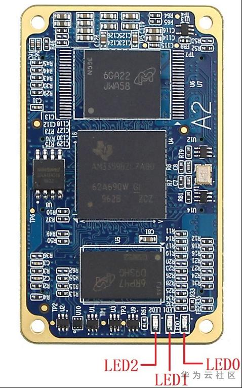 评估板上电后,电源指示灯LED0点亮;随后U-Boot第一阶段启动,LED1点亮;紧接着U-Boot第二阶段启动,LED2点亮;直到内核启动运行时,LED2熄灭,LED1进行心跳闪烁;eMMC进行读写时,LED2闪烁。