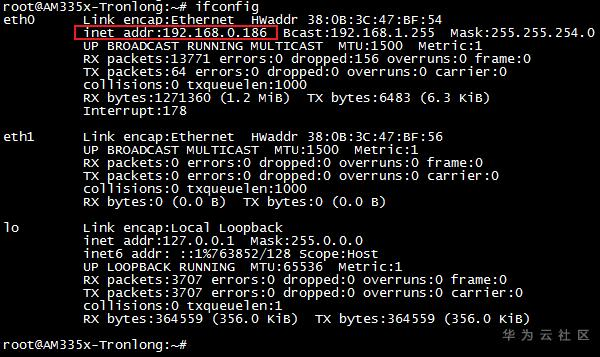 执行如下命令可查询IP地址。本次查询到的IP地址是192.168.0.186。