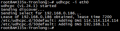 将评估板RGMII ETH1网口通过网线连接到路由器。在评估板上执行如下命令可自动获取到IP,如下图所示。”-i”用于指定网卡,eth0为网卡名字,请根据实际情况修改。