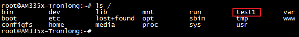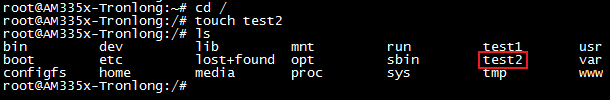 执行如下命令在评估板文件系统根目录新建一个测试文件test2。