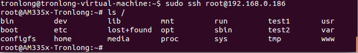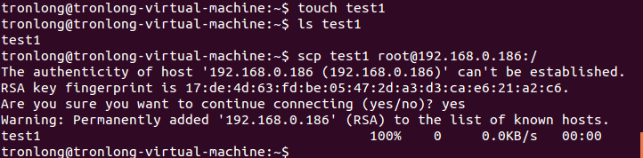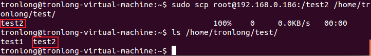 Host# sudo scp root@192.168.0.186:/test2 /home/tronlong/test/