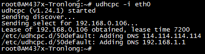 Target# udhcpc -i eth0