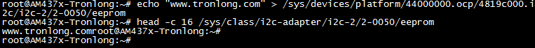 Target# echo "www.tronlong.com" > /sys/devices/platform/44000000.ocp/4819c000.i2c/i2c-2/2-0050/eeprom